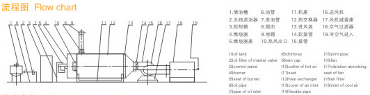 燃料通過燃燒器燃燒,產(chǎn)生高溫燃氣。并借助具有強化換熱措施的熱風(fēng)爐將高溫燃氣的熱量傳導(dǎo)給被加熱的空氣,高溫燃氣經(jīng)熱量散發(fā)后溫度降低至250℃后排到大氣中。需加熱的空氣通過選配的鼓風(fēng)機強送入熱風(fēng)爐,吸熱后溫度升至額定值從熱風(fēng)出口處送出,當(dāng)熱風(fēng)溫度達到額定溫度上限時,燃燒器會自動停止燃燒或自動轉(zhuǎn)為小火焰燃燒,當(dāng)熱風(fēng)溫度降低到額定下限溫度時,燃燒器又會重新點燃運行或轉(zhuǎn)為大火燃燒,升溫的速度可以調(diào)節(jié)進風(fēng)閥的開度來實現(xiàn)。