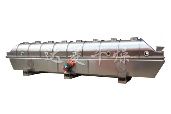 物料自進(jìn)料口進(jìn)入機(jī)內(nèi),在振動(dòng)力作用下,物料沿水平流化床拋擲,向前連續(xù)運(yùn)動(dòng),熱風(fēng)向上穿過流化床同濕物料換熱后,濕空氣經(jīng)旋風(fēng)分離器除塵后由排風(fēng)口排出,干燥物料由排料口排出。